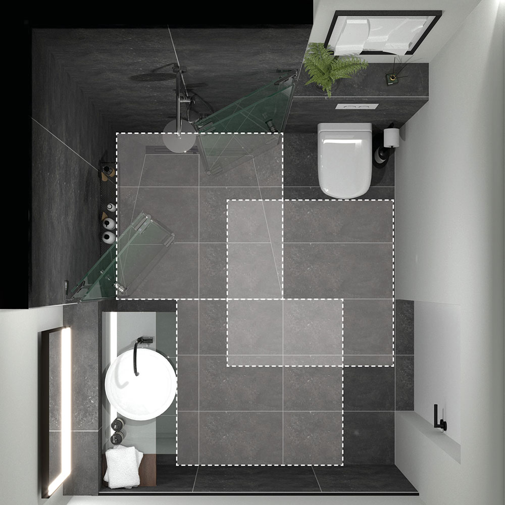 Kleine Grundrisse erfordern eine präzise Planung – insbesondere dann, wenn zusätzlich barrierefreie Standards berücksichtigt werden müssen. Dieses Beispiel zeigt, wie auf lediglich 2,2 × 2,4 m ein vollwertiges Bad realisiert werden kann: