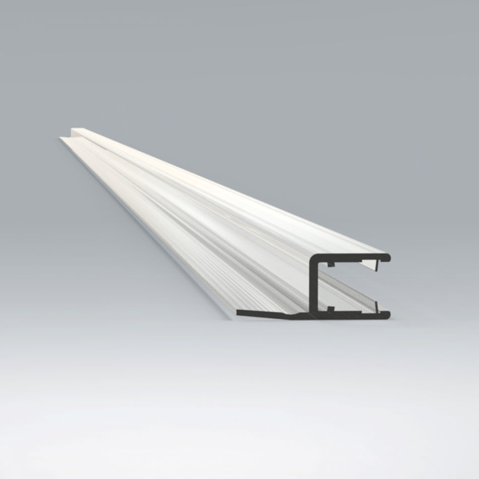 Mitteldichtung aus transparentem Kunststoff zur Abdichtung zwischen Festteil und Tür bei flächenbündigem Glasanschluss.