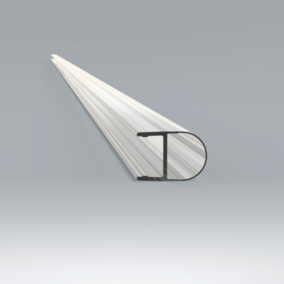 Aufsteckbare Dichtung aus transparentem Kunststoff. Die kurzen Stege sorgen für eine dezente Optik und kommen ausschließlich in Sonderkonstruktionen zum Einsatz.