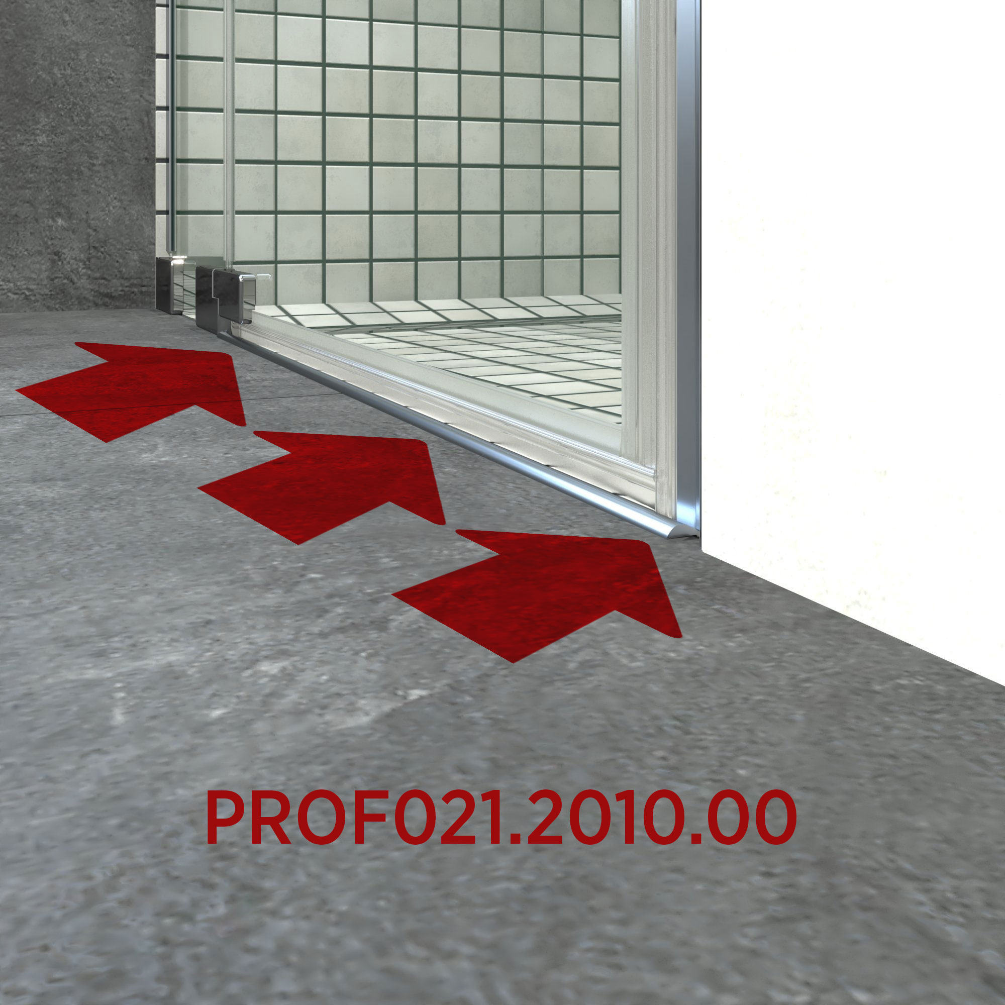 Das eloxierte Aluminiumprofil dient als barrierearmer Schwallschutz bei flachen Duschflächen. Es wird mit Sanitärsilikon direkt auf dem Boden verklebt und verhindert das Austreten von Wasser im Übergangsbereich zur Duschkabine.